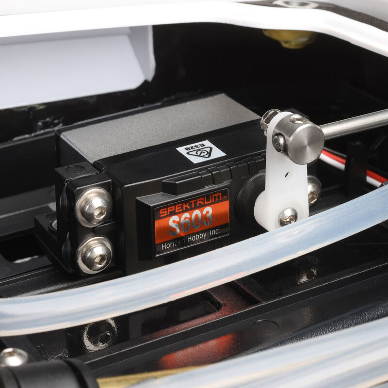 When you’re running on water, chances are good a small amount will get into the hull. Spektrum receivers are water resistant, but the exposed pins that accept servo leads are susceptible to connection issues if they do become wet. The Blackjack 24” catamaran includes a receiver box that locks out moisture and keeps this critical component safe and dry.