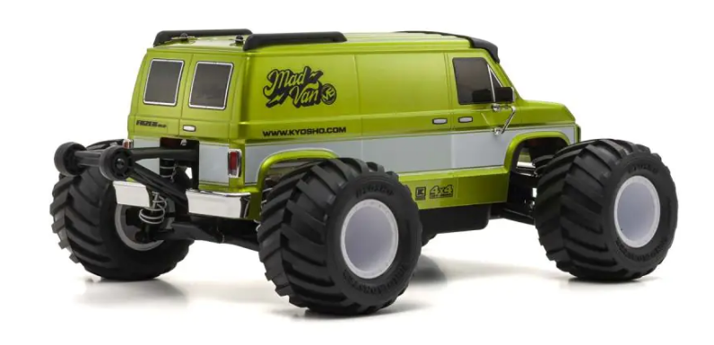 Enhanced scale features of the American street van styled FAZER Mk2 MAD VAN combine with a 50% increase in maximum speed with the change to brushless motor power in this 1/10 scale VE model. In place of the conventional G14L brushed motor, the new model combines the powerful TORX 10E brushless motor with BRAINZ 10 speed controller to lift the maximum speed from 40km/h to 60km/h. To manage the extra power and RPM, gears have been reinforced and reduction ratio optimized on the FZ02L-BT chassis base, which now incorporates the previously optional aluminum HD center shaft L. In addition to chassis improvements, the body styling has also received a 3-D enhancement with molded resin grille and lights replacing decals, and a roof guard has been added to protect the body from rollovers. With elevated performance and appearance, you can experience the exhilaration of running wild at high speed with the MAD VAN VE.