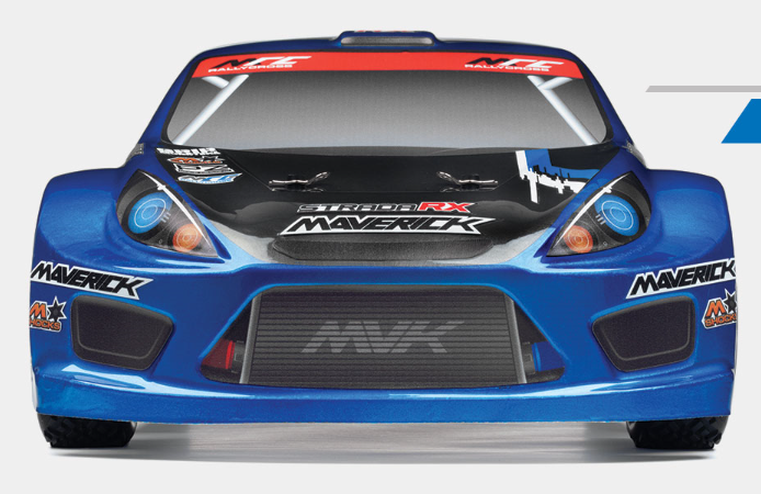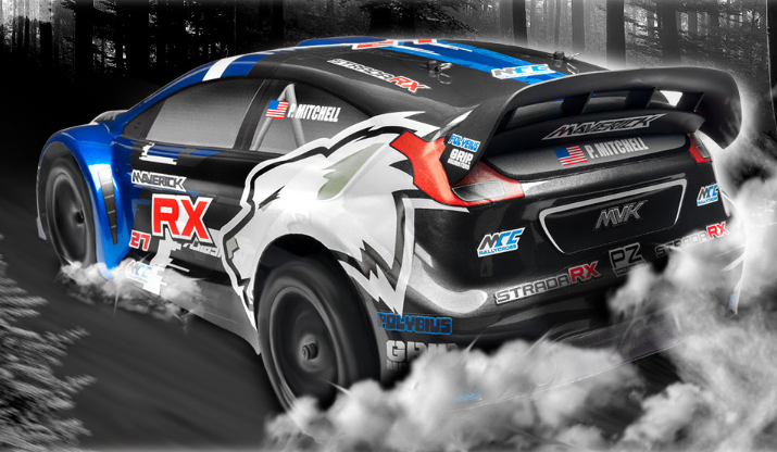 For ultimate on- and off-road attitude, rallycross is where it's at! With the Maverick Strada RX, you get a powerful 4WD racing car chassis with a shaft drivetrain, fully tunable racing suspension and waterproof electronics for action wherever and whenever you want it! With a racing hatchback car body and functional rear wing providing additional downforce, the Strada RX is ready for all-out rallycross action!