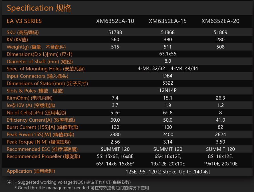Dual Sky XM6352EA-20 280kv 2624w 125E Brushless Outrunner Motor 508g 18x12 - 20x10E Prop Replaces .95 - .120 2 Stroke