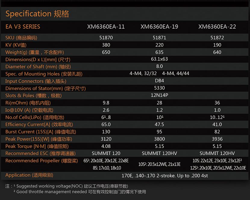Dual Sky XM6360EA-19 V3 220kv 3800w Brushless Out Runner Motor 635g 10S Prop