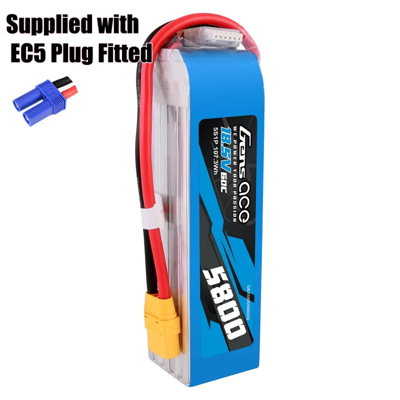 Gens ace lipo 5800mAh 5S1P 60C lipo battery pack has remarkable stacking technology which enables single cell capacities of 5800mAh. With high discharge performance and high energy density.Gens ace batteries provide high quality; reliable power ;this battery fits for 700 size heli; scale glider.