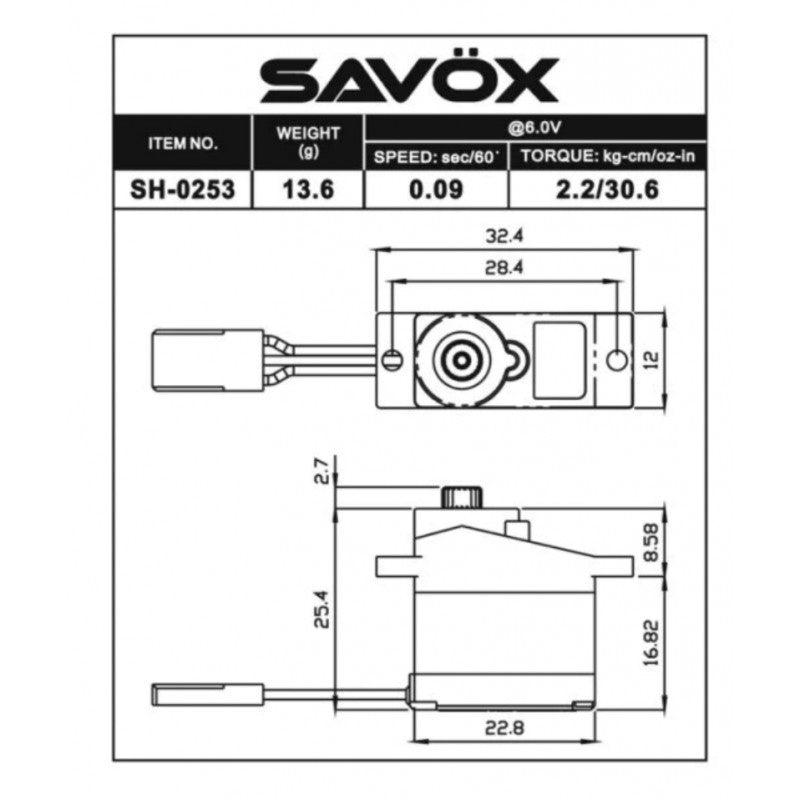 The Savox SH-0253 micro, digital servo has a nice balance of torque and speed in addition to using a combination of industrial plastic and metal gears for added durabilty and smoothness.