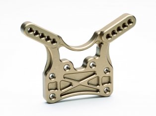This Aluminum Shock Tower will fit on the front or rear of any Quantum or Quantum+ truck and improve the overall performance and durability! Finished in cool amber gold colored anodizing for a great custom look.