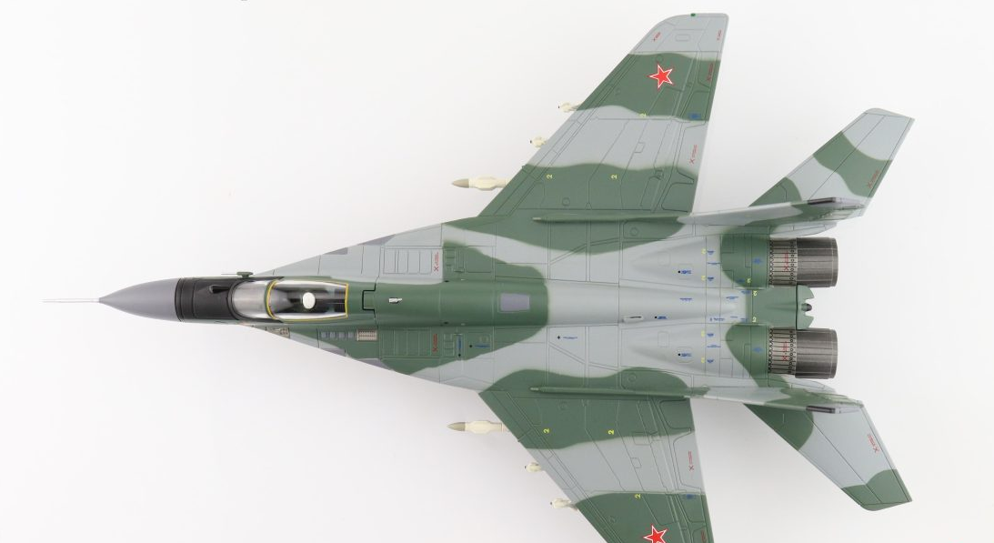 The MiG-29 is a twin-engine supersonic fourth generation air superiority jet fighter developed in the Soviet Union in the 1970’s. The aircraft entered service with the Soviet Air Force in 1983 and still is in use with them as well as equipping over twenty four other countries over the years. The NATO designation for the MiG-29 is Fulcrum and it was designed to counter the American F-16 and F-18. The MiG-29 was first seen in the West in 1986. The MiG-29 (9-13) is designated the Fulcrum C.