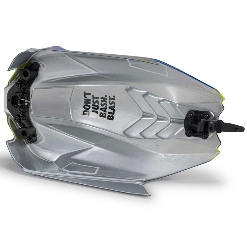 The TYPHON MEGA 665 4x4 racing buggy body is securely held in place by a hidden clipless body retention system. The body comes in a choice of bold, factory-finished color schemes and includes a high downforce wing.