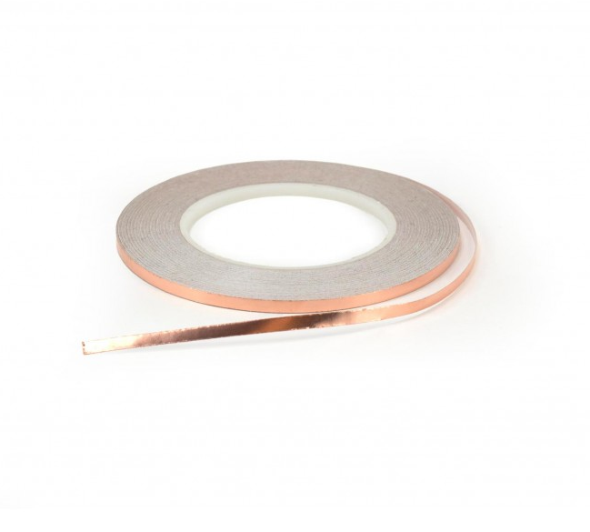 This Copper Adhesive Tape is used as a protective lining under the waterline on old ship models hulls. It has one side with glue and the other without it.