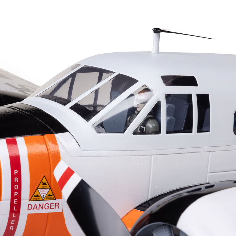 The highly rated and beloved E-flite® Beechcraft D18 1.5m returns — now in a fully painted RC‑45J (SNB‑5P) U.S. Navy trim scheme and upgraded with enhanced AS3X+ and optional-use SAFE Select technologies. With its easy assembly, rich scale detail, and outstanding flight performance, this updated Twin Beech is the most capable, convenient, and easiest-to-fly version yet.