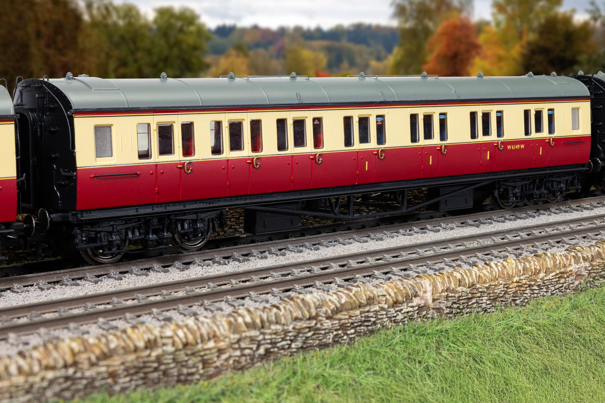 HOR R40474 Hornby BR - Collet Corridor Composite LH - 6149 - Coach - 2025 Catalogue Although introduced onto the GWR by Collett from 1925, many of these modern-for-their-time coaches...