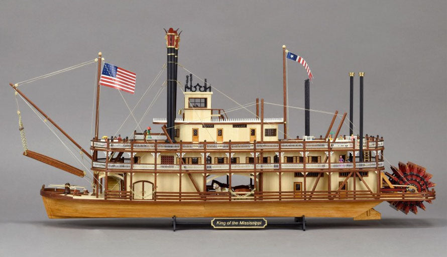 King of the Mississippi is a renewed naval modeling kit for medium level modelers. With the purchase of this ship model you will have all the necessary parts to complete this model of the Mississippi steamboat at 1:80 scale. You will only have to use your tools and desire to enjoy building it. At the very last, this historic naval artwork will delight you. Now with figures, LED lights and motor for the paddles, on sale in three separate sets!