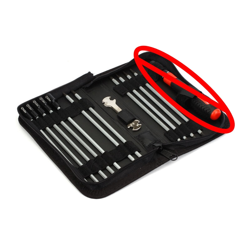 This toolset is missing the handle.  Only one availabe at this price.   Key Features Contains all common tools needed to maintain metric vehicles Packaged in a zippered tool pouch Compact, complete and affordable Overview Dynamite's...